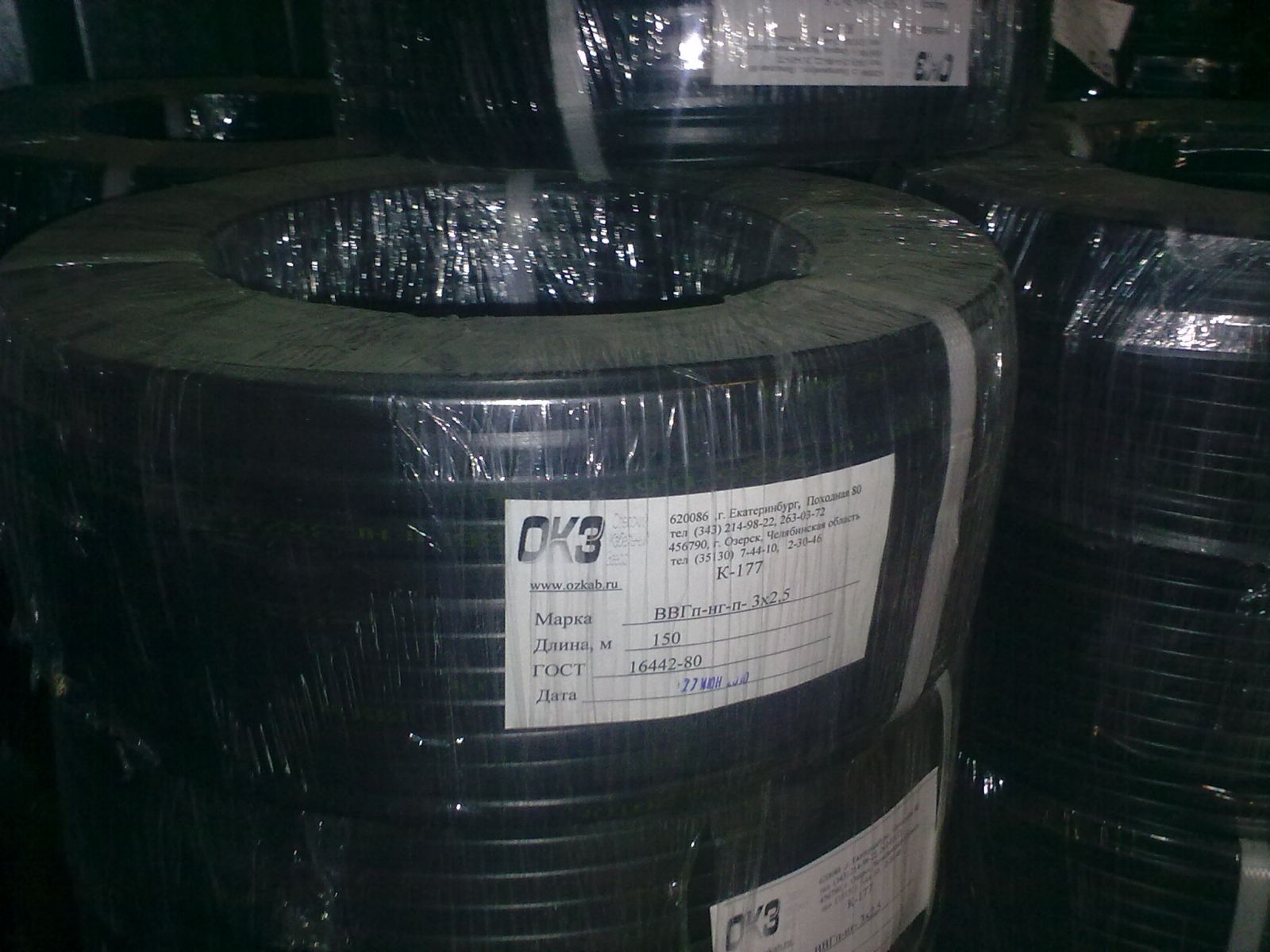 Производство и оптовая продажа кабеля ВВГнг 3х2,5 (заводская бухта 150м) 0,66КВ,